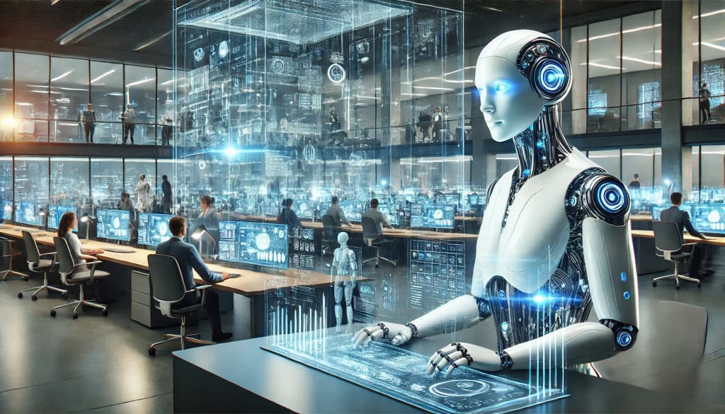 imagem feita por inteligência artificial mostra um robô trabalhando em um emprego