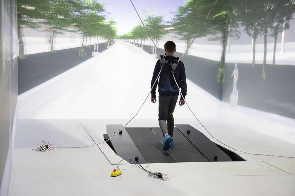 O equipamento utilizado lembra uma esteira comum, porém, incorpora recursos avançados, como sensores de movimento, plataformas que medem a força dos passos e integração com ambientes virtuais (através de óculos de realidade virtual). Durante os testes, os voluntários caminham enquanto realizam tarefas mentais, como responder a estímulos visuais ou resolver exercícios simples de atenção e memória.
